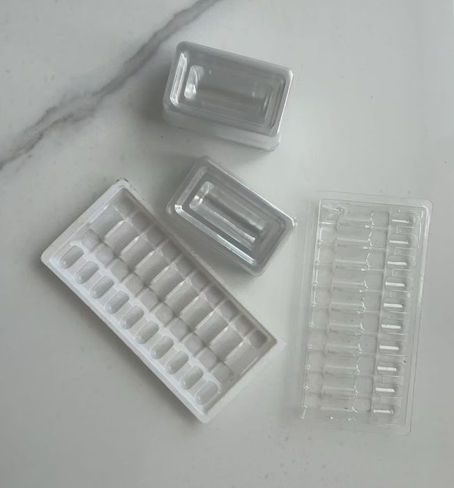 Wholesale of 10 PVC plastic trays for 1 ml of water needle vacuum forming inner tray for medicine, 1 ml 5, 10 plastic inner ampoules, vials, trays, inner trays, medicinal trays.